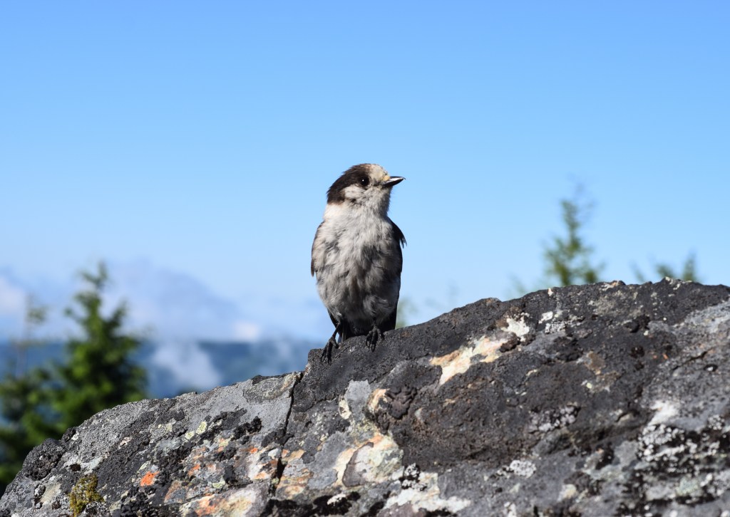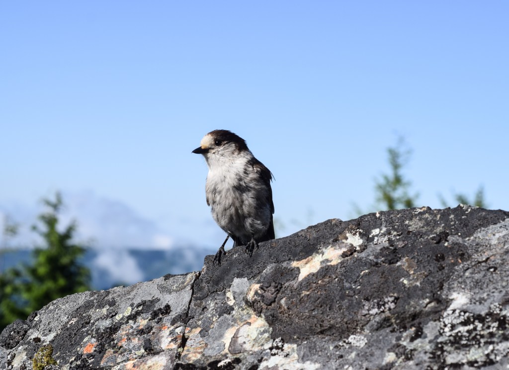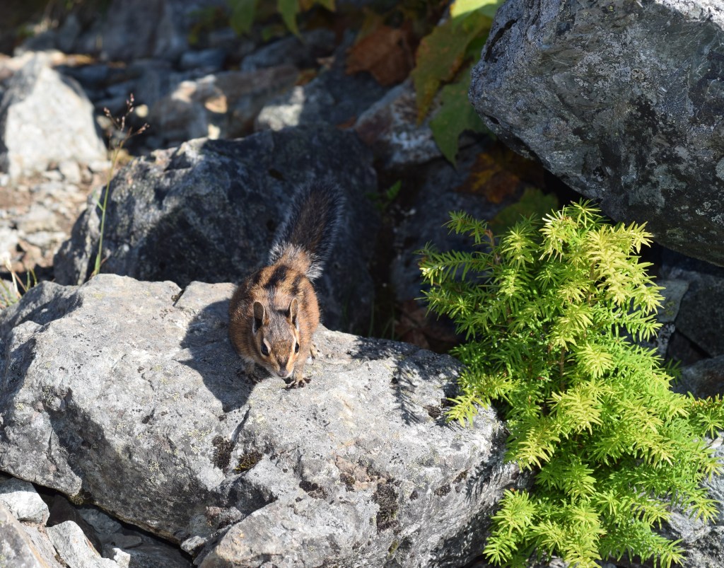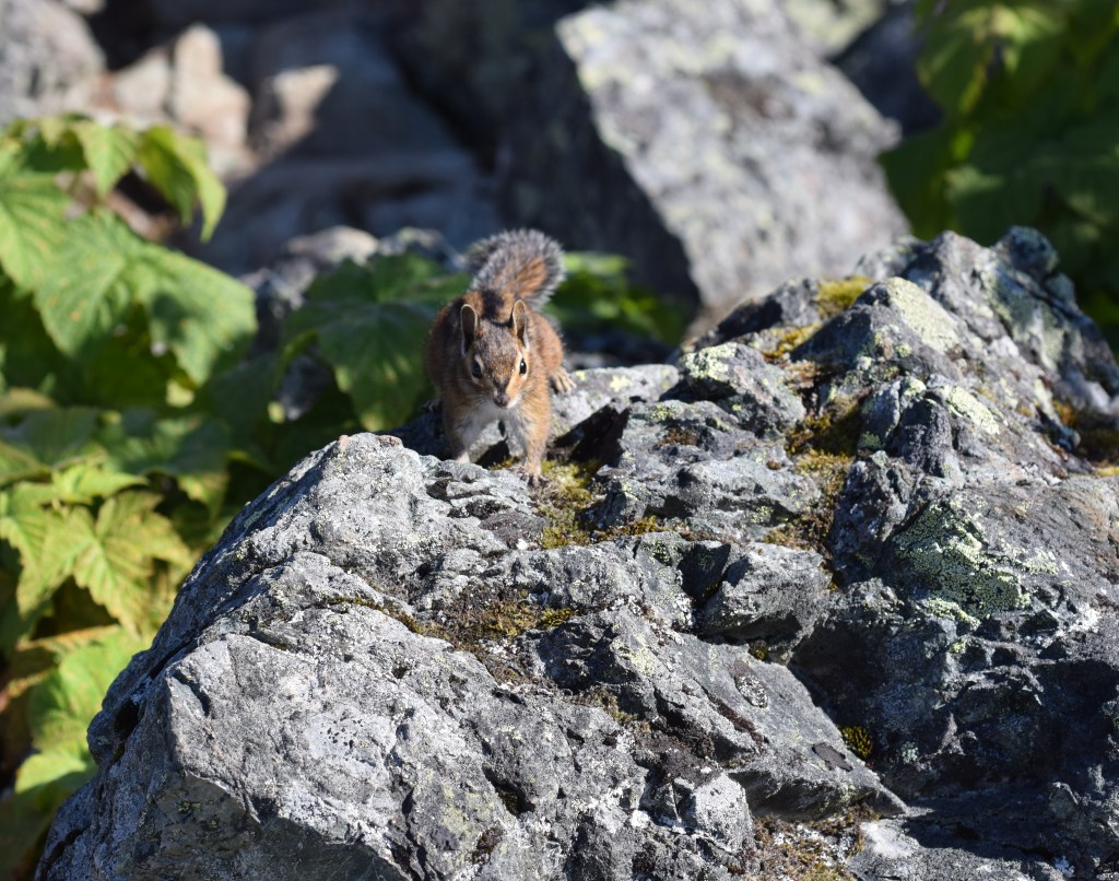 I wasn’t the only one eyeing these berries! The birds and chipmunks were just as interested. This food made good bait to capture some cool photos. After the photos were taken I quickly finished my snack and enjoyed the view – hoping the animals would leave us alone for bit. Luckily this worked and we were able to rest without having to look over out shoulders and guard our food.